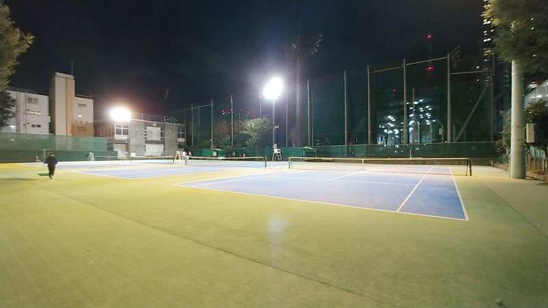 赤いラインから黄色いラインに飛んできたボールはベースライン辺りで打つ