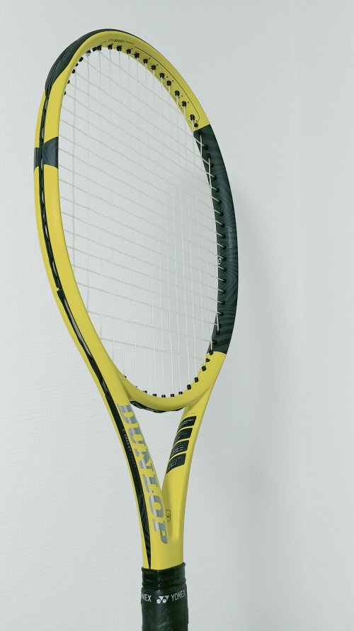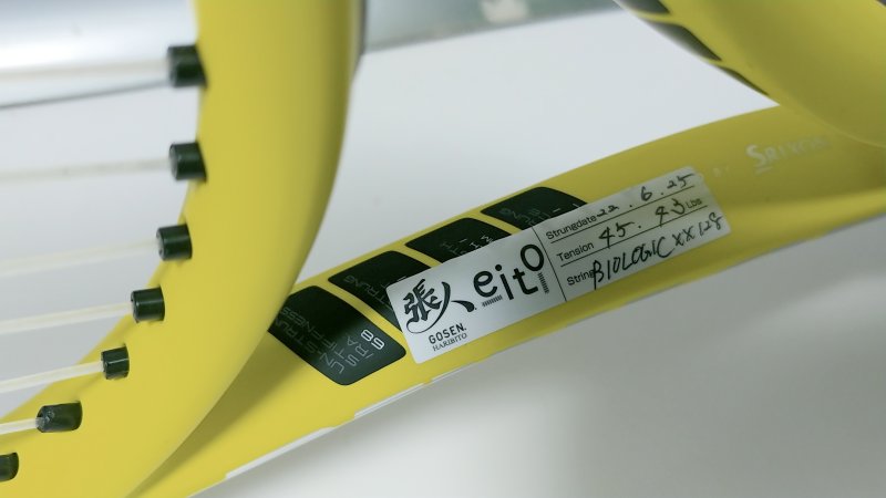 ラケットが黄色いからか、ボールがラケットのどこの面に