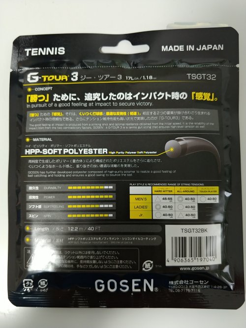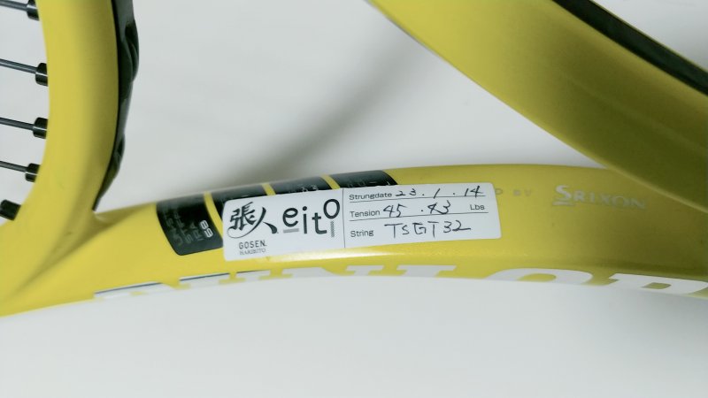 前のガットは他のラケットに張ろうとしていた黄色を張ったけど